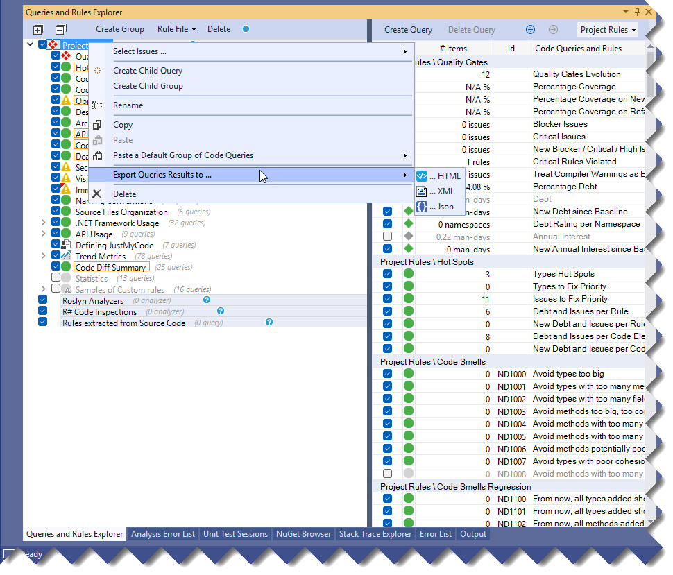 Genera reglas CQLinq y quality gates para impedir regresiones