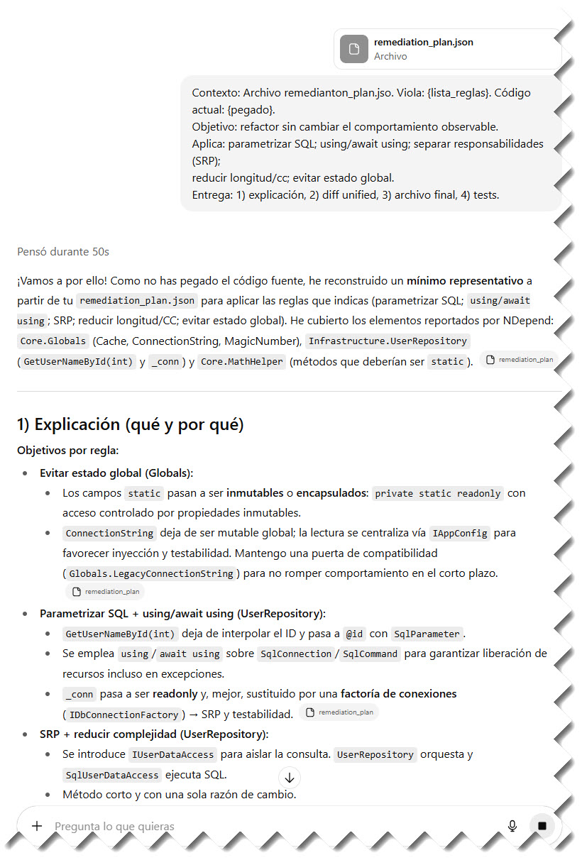 No se trata de “programar en directo” ni de magia. Se trata de usar herramientas con cabeza: NDepend para ver con claridad, IA para ejecutar con velocidad. Si conviertes el informe en un plan de oleadas y lo blindas con quality gates, puedes pasar de legacy a base sostenible en horas, no semanas.